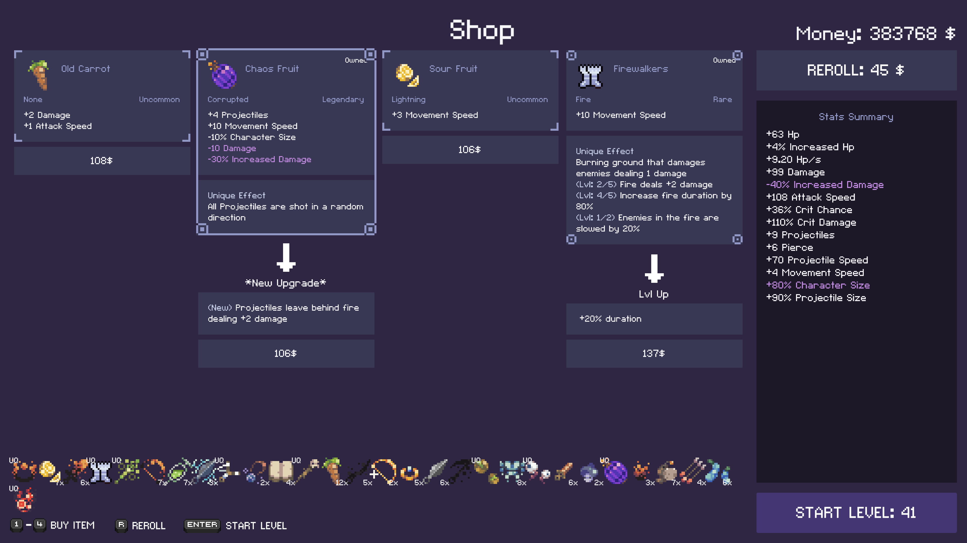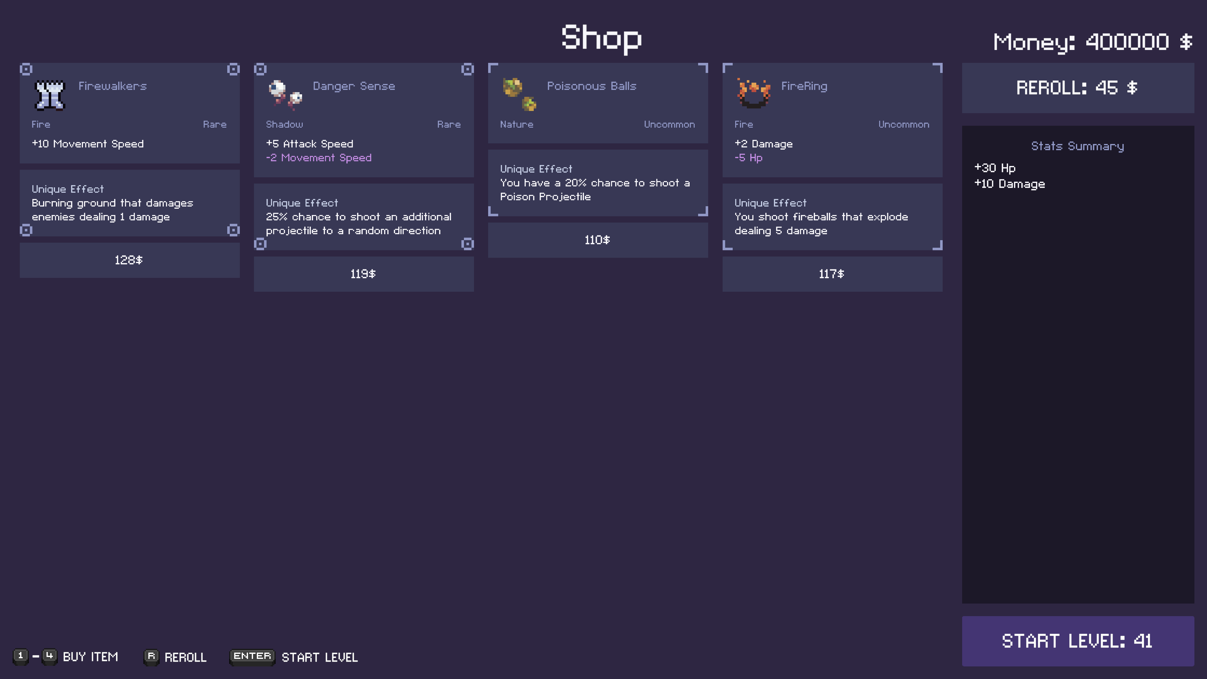 - Buy and upgrade items to improve your character